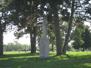 St.Viator, the patron of the Viatorians, stands above the gravestones